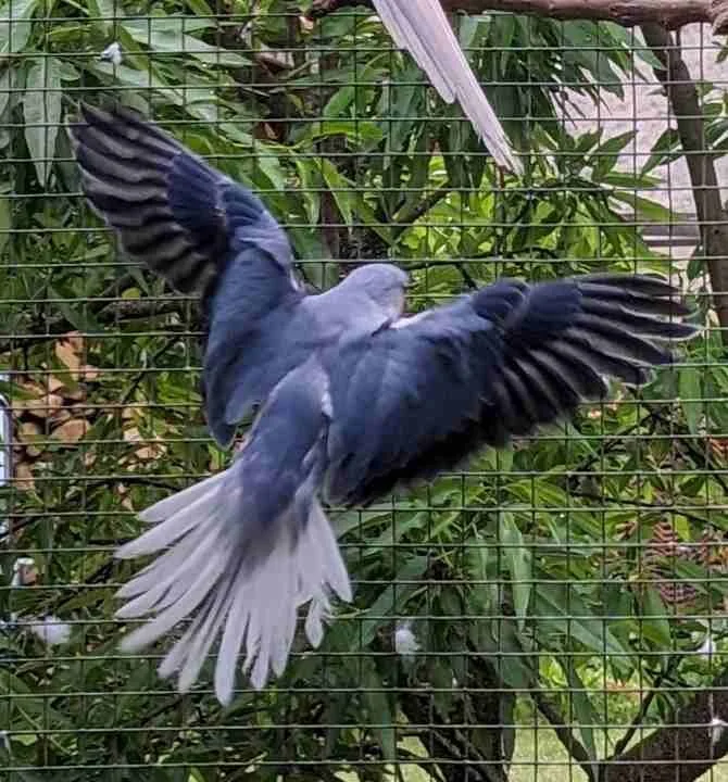 Une fois plumés, les jeunes perruches à collier vers 52 jours, plus ou moins selon les oiseaux, sortent du nid pour prendre leur envol.