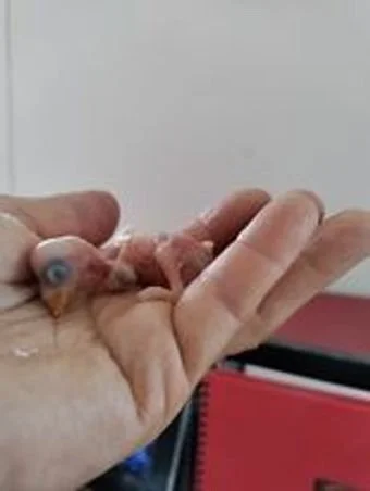 Dans le nid, je découvre deux BB nés et un œuf pas encore éclos.
