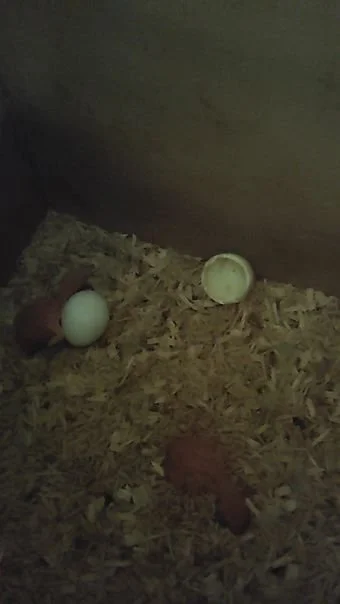 Un pan de protection dans les volières a légèrement bougé . Je vais alors le remettre correctement en place . J'en profite aussi pour vérifier le nid où se trouvait trois œufs, car la date d'éclosion ( 23 jours d'incubation en général) était passée.