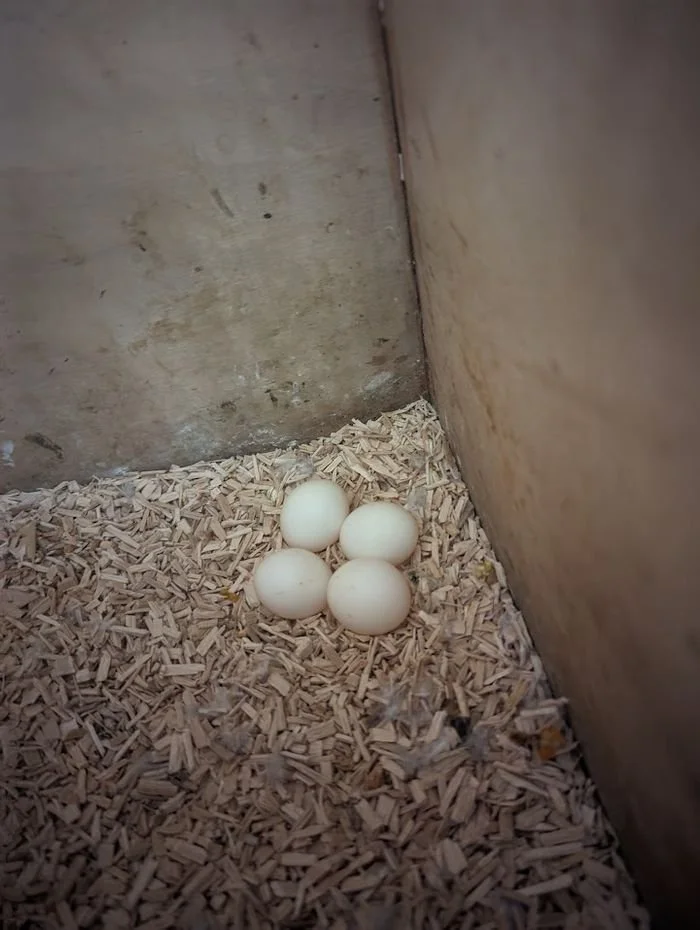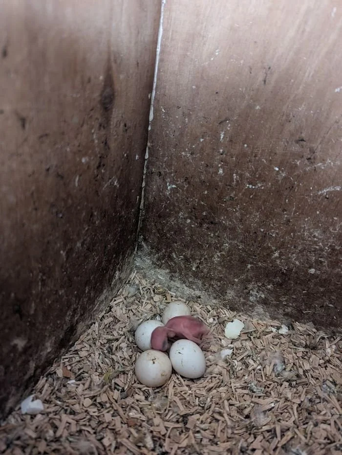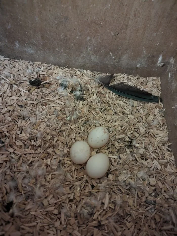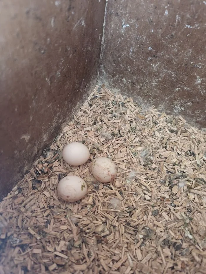 28 mars: j'ai à nouveau retiré le nid, les œufs étaient clairs. Le jeune male de 2022 n'est pas encore mature. La femelle, elle , aussi de 2022, a été capable de pondre.