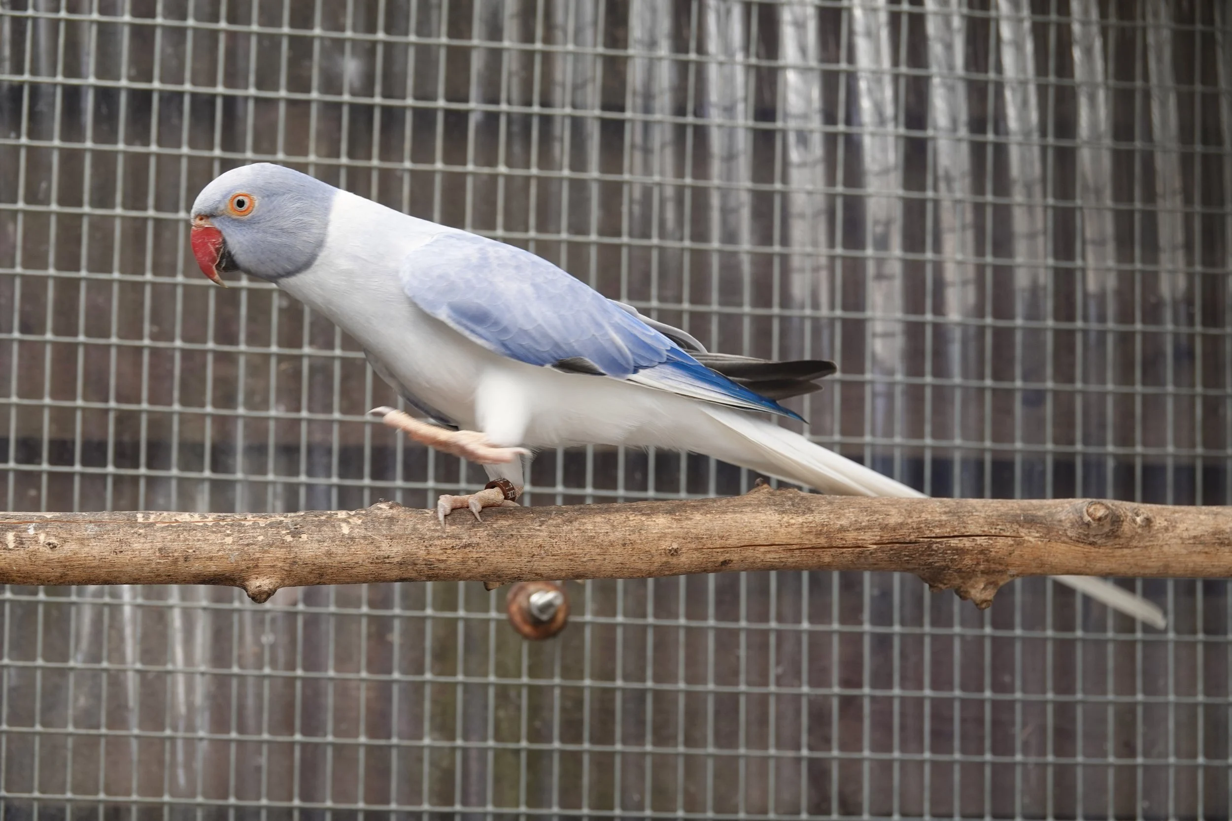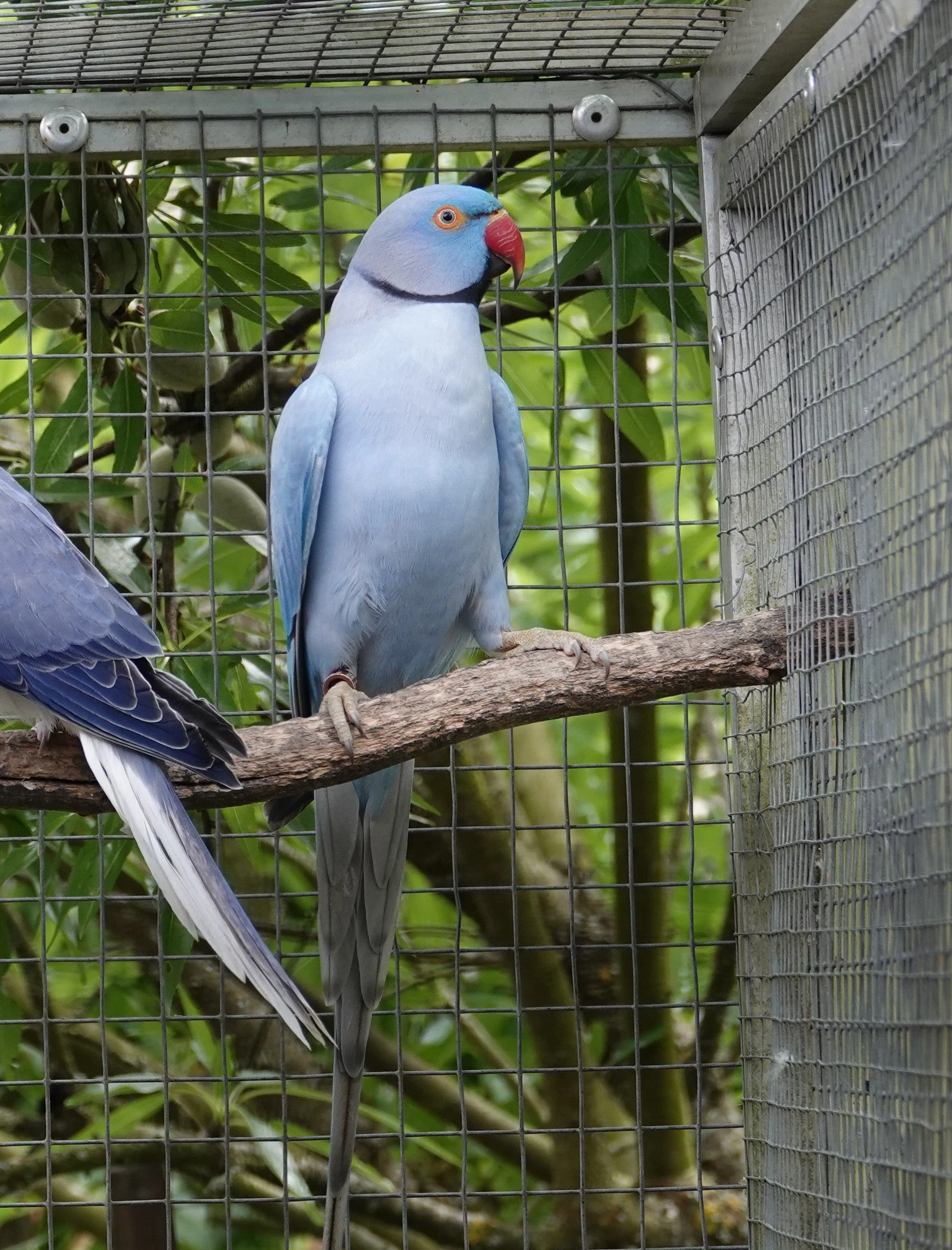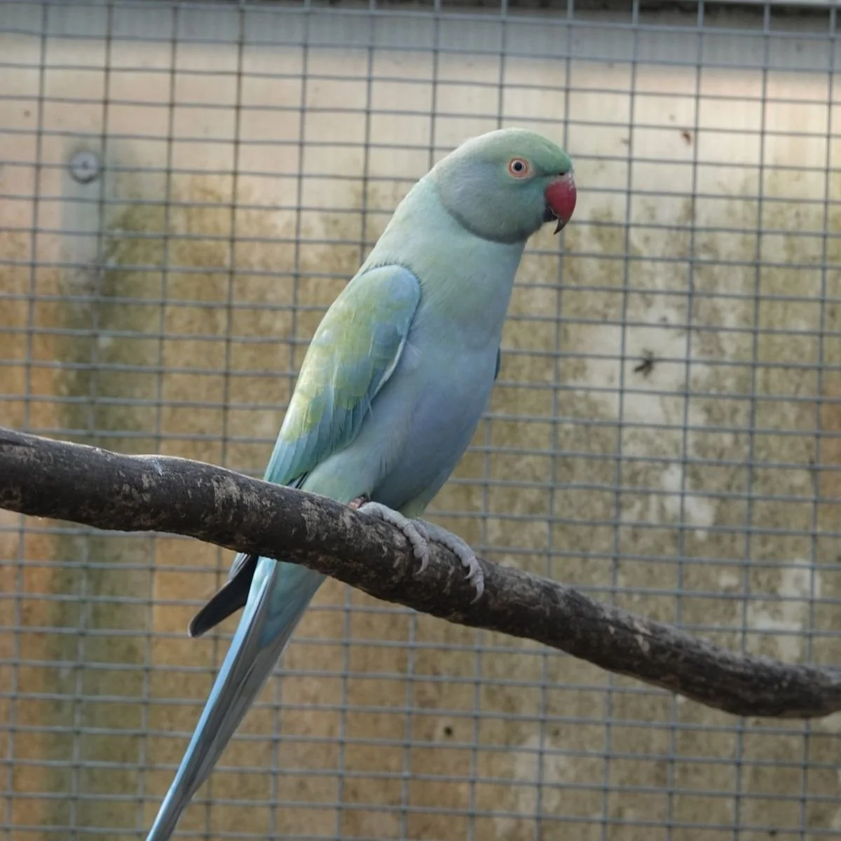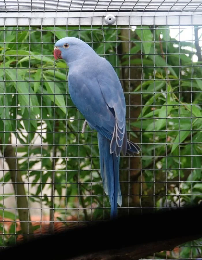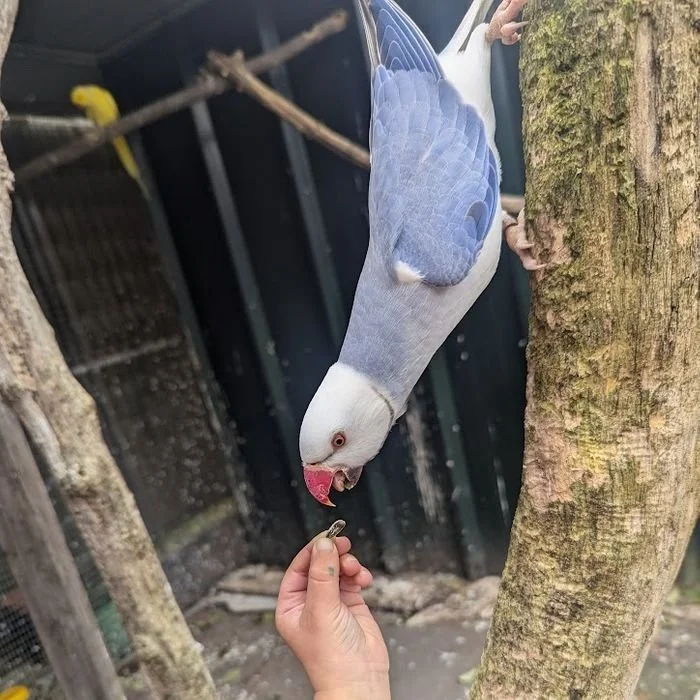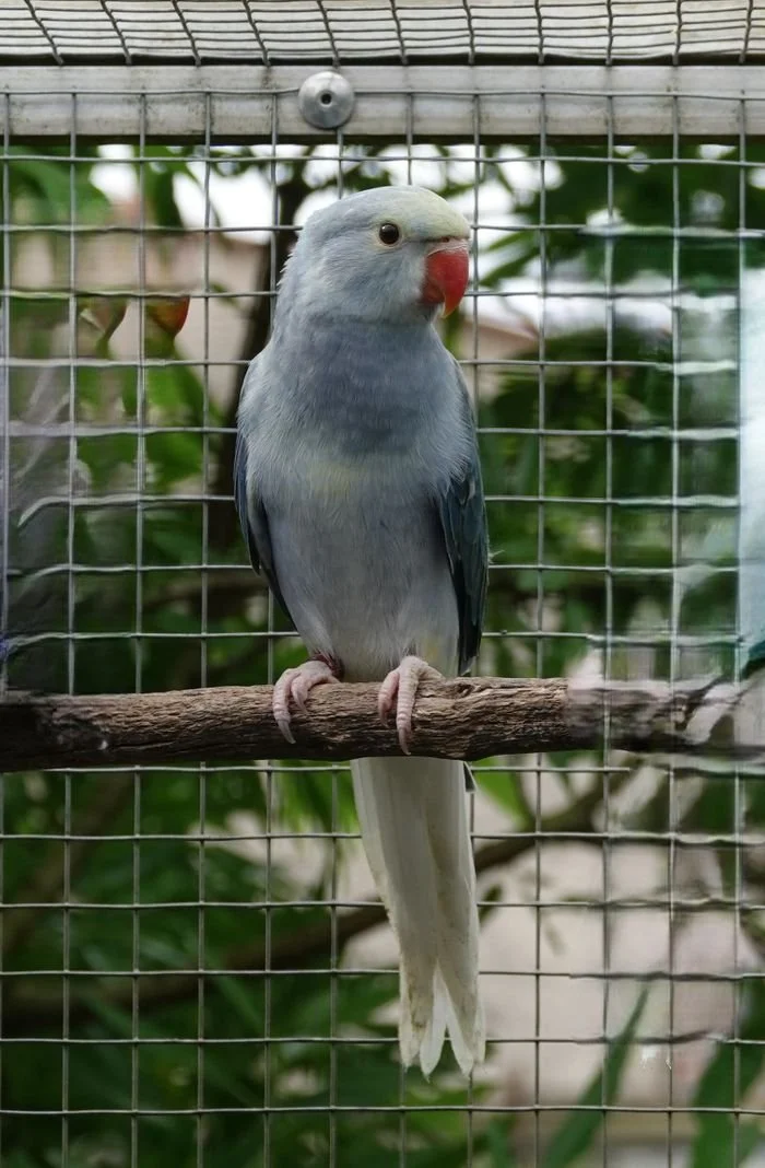 19 mai: on a fait sexer nos jeunes perruches à collier, ici, une femelle bleu porteuse de cleartail .
