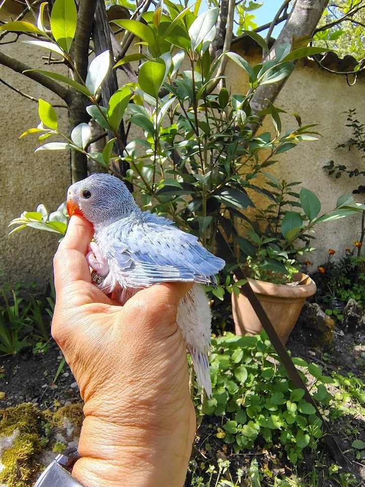Mâle opaline cleartail violet, né en 2025 à l‘élevage.