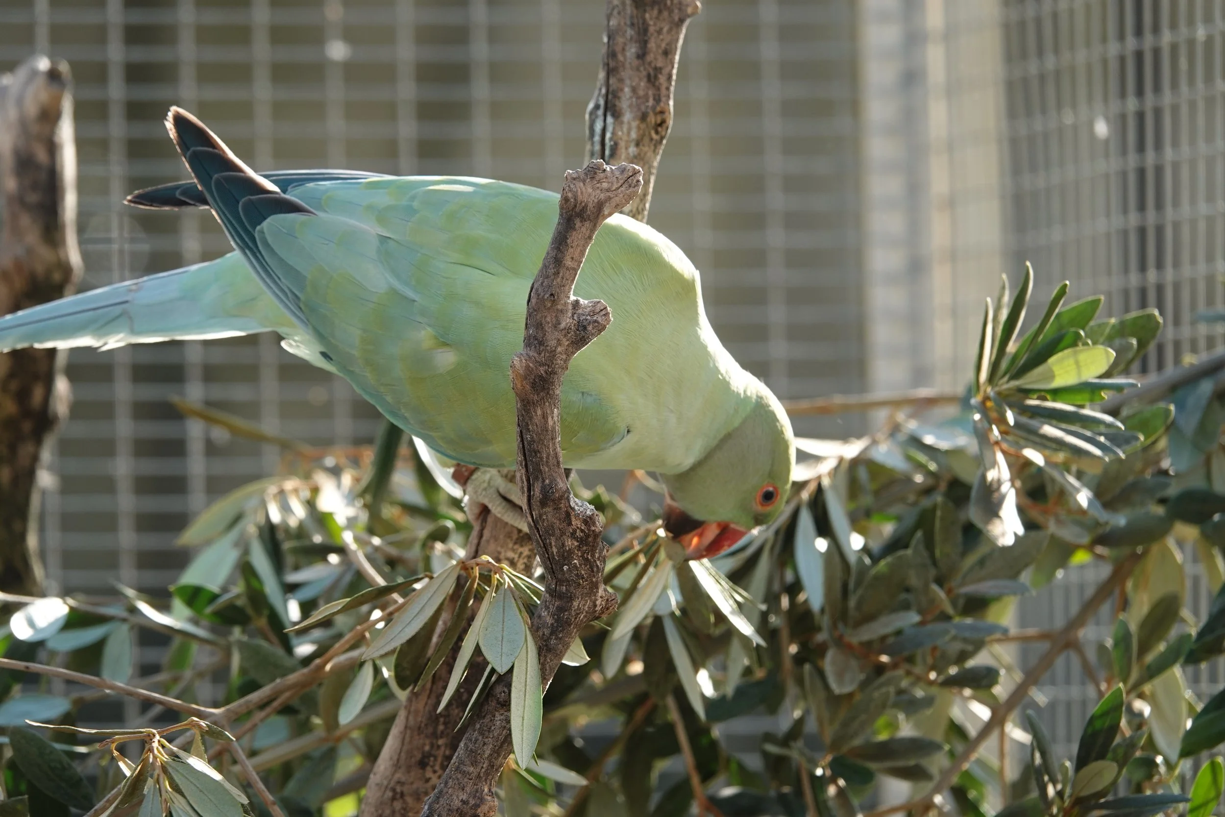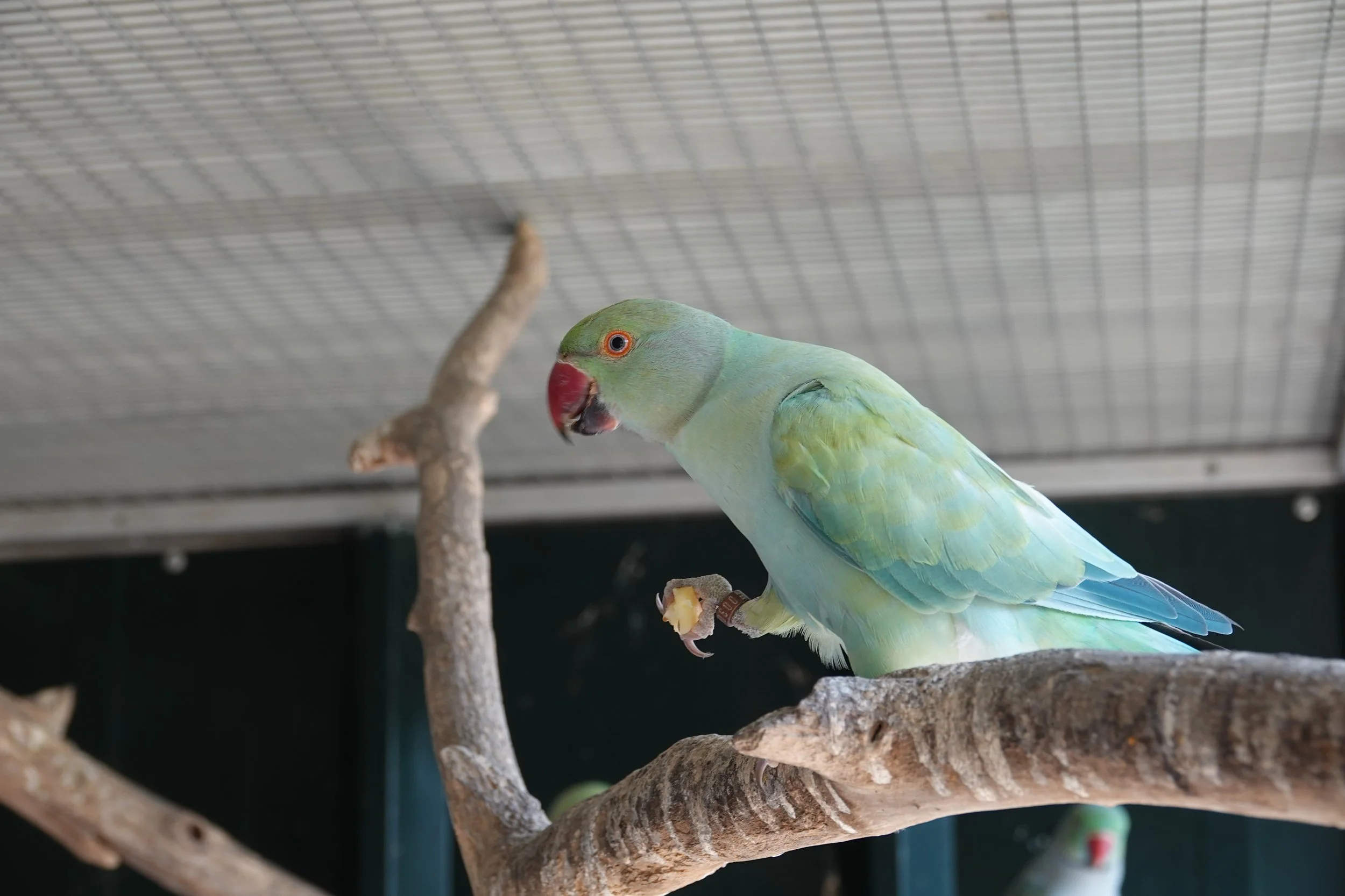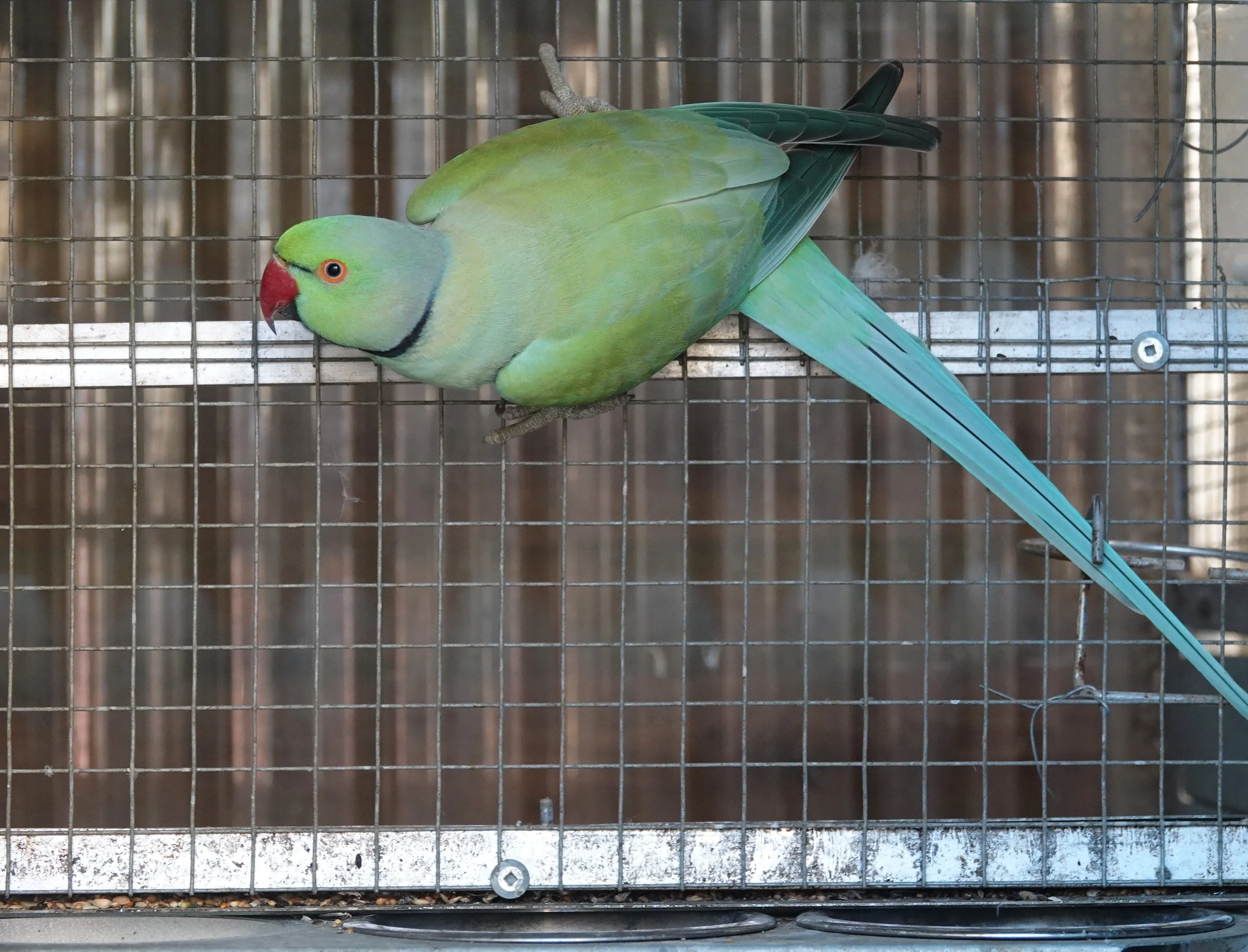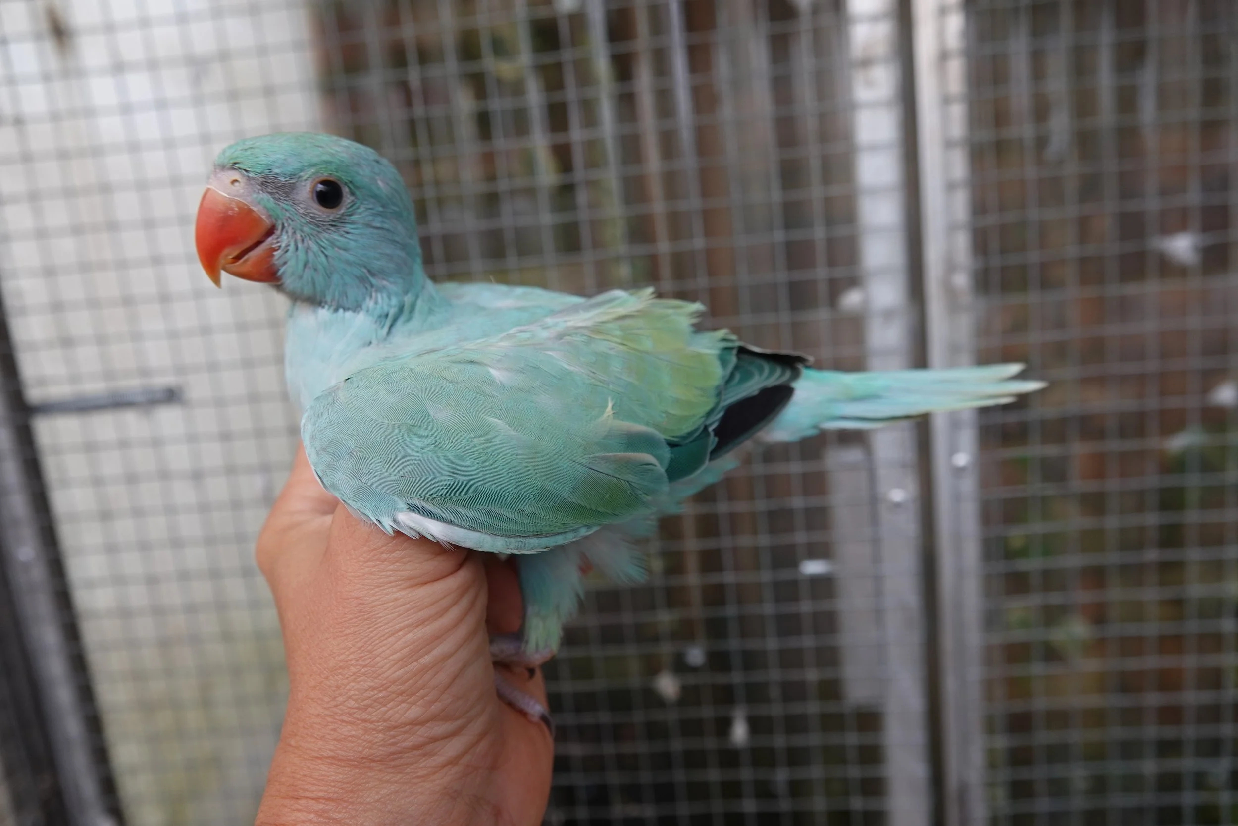 Il aime venir manger à la main dans la volière collective.