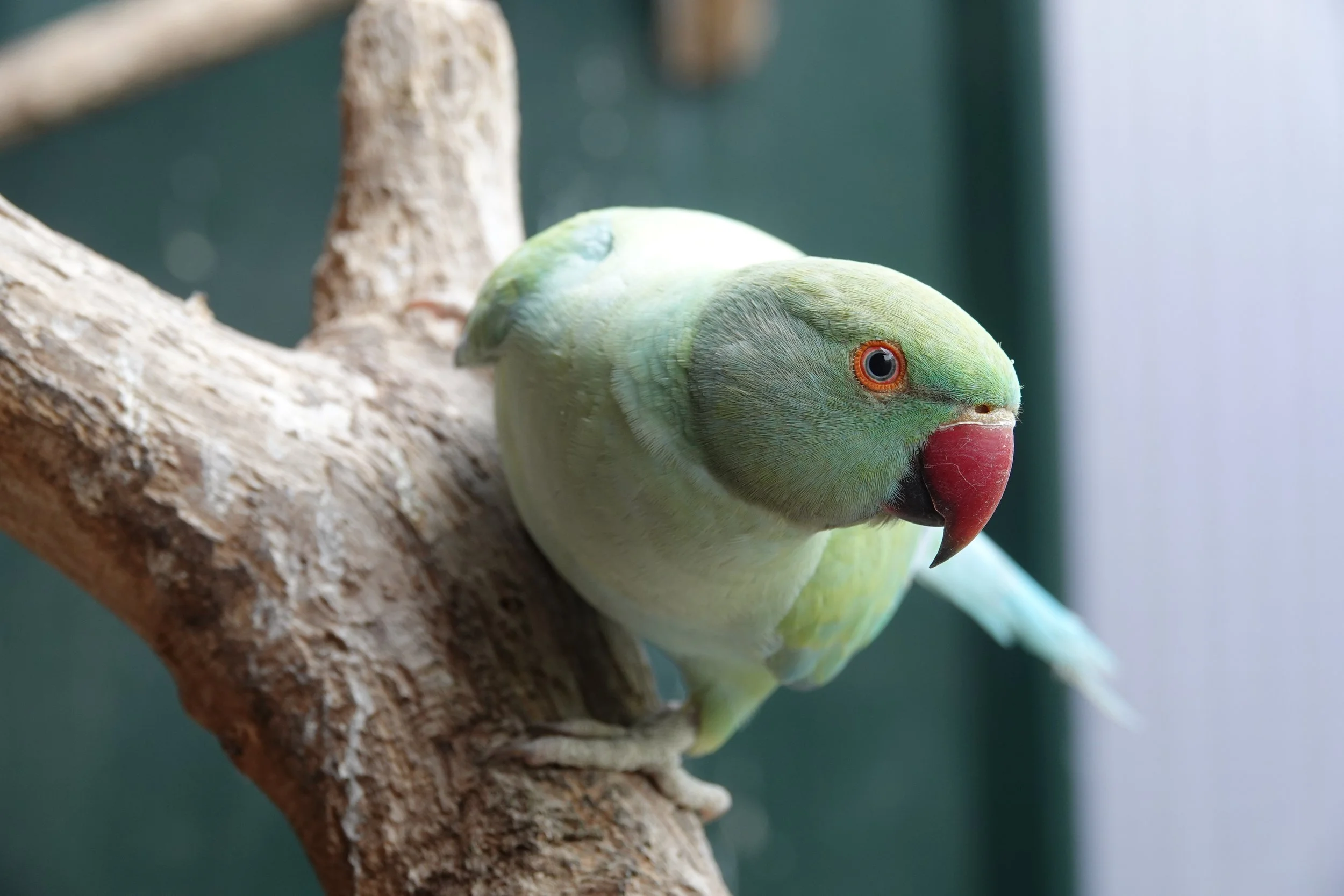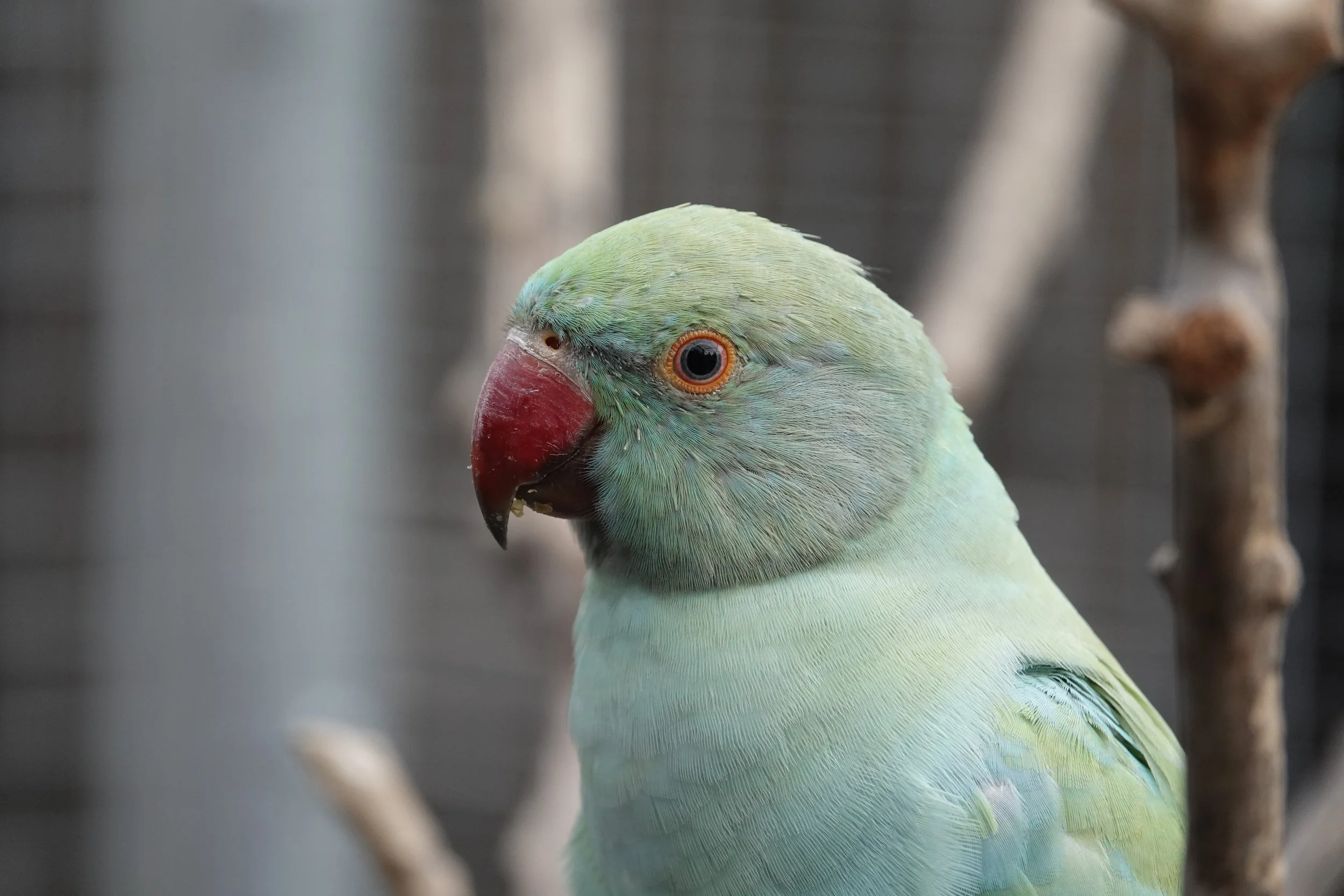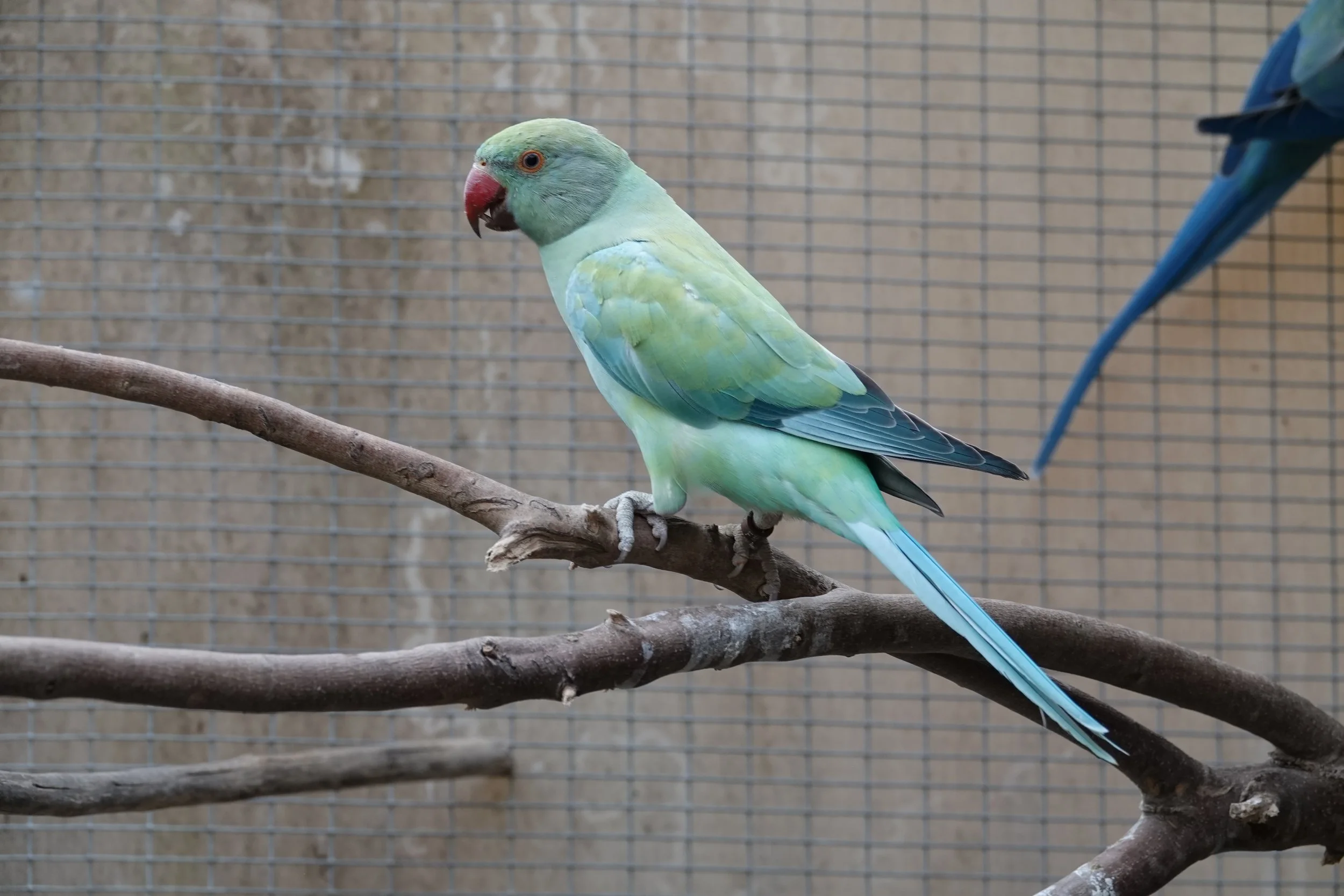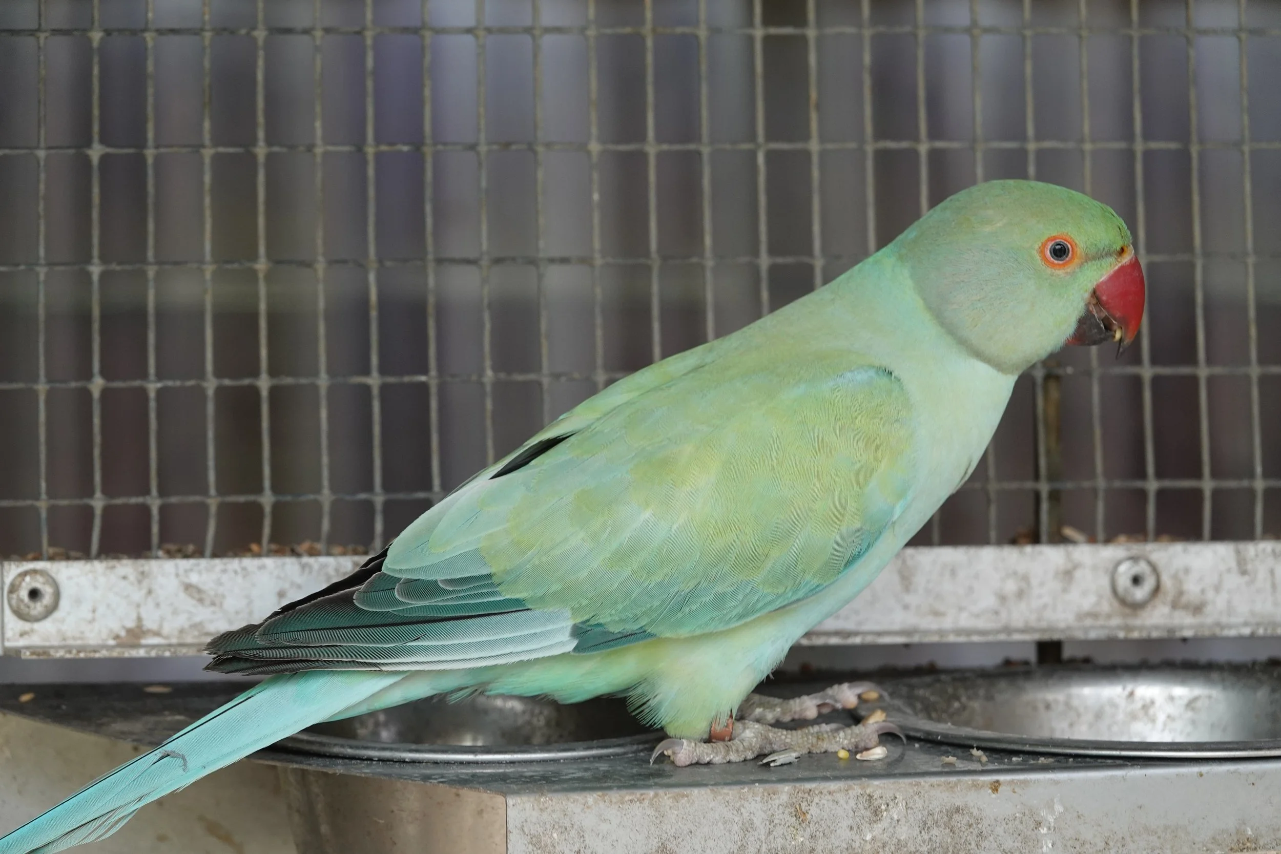 Il aime venir manger à la main dans la volière collective.